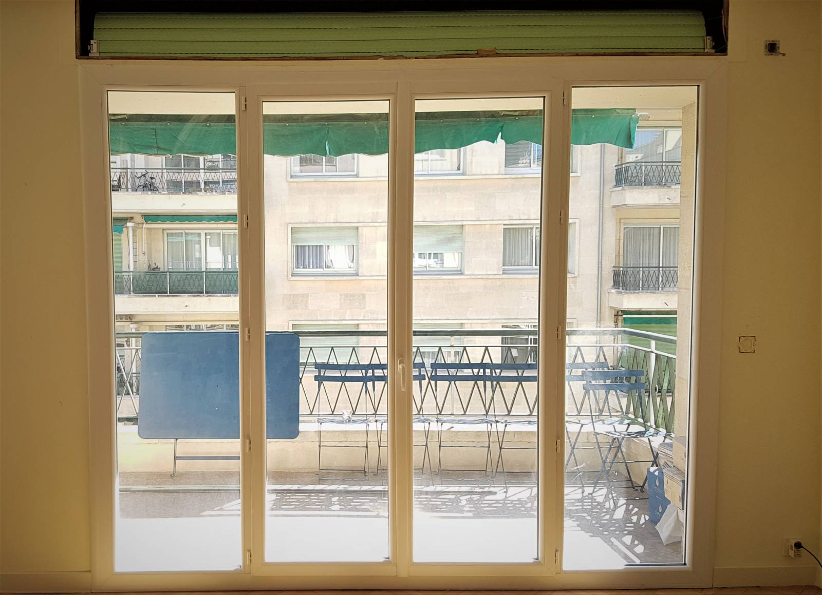 La société Alberstore à Aubagne a remplacé les tabliers de volets roulants existants dans un appartement de Marseille. Il n'est parfois pas necessaire de changer entièrement un volet roulant. Il peut être également possible de le réparer. C'est ce que nous avons fait en ne changeant que les lames et les coulisses des volets roulants en place. Nous avons remplacé les anciens tabliers en bois par des tabliers à lames aluminium type 56 de couleur identique, vert provençal. Ces tabliers à lames aluminium à doubles parois et mousse polyuréthane garantissent une très bonne isolation à la fois phonique et thermique mais également une très bonne résistance au vent. Insensibles aux UV, inaltérables et exigeant peu d’entretien, les tabliers de volets roulants vendus par Alberstore Aubagne contribuent à une amélioration de l’isolation thermique et phonique, et permettent donc des économies d’énergie incontestables. Ce produit technique est la solution intemporelle, polyvalente et efficace à ne pas manquer.