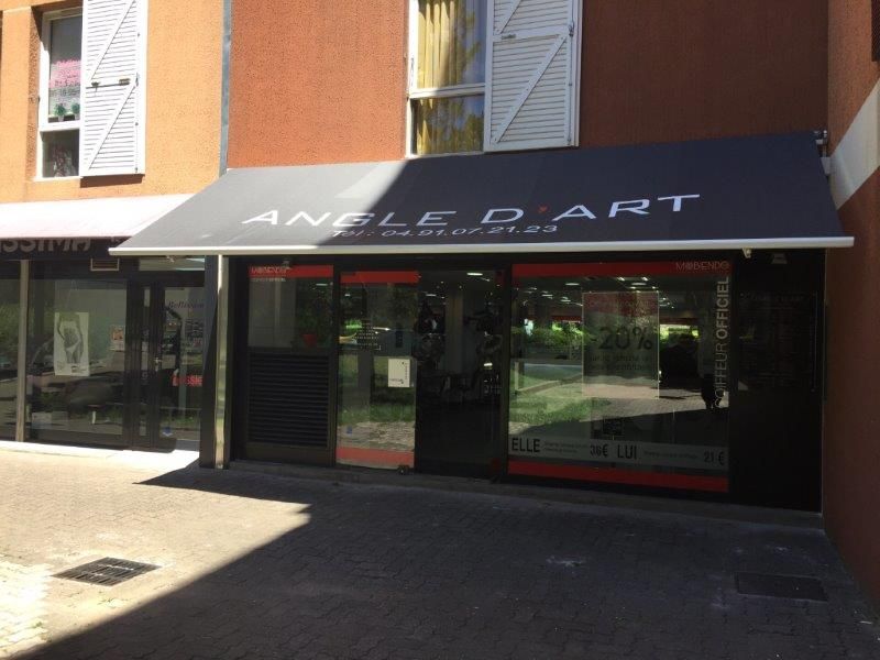 La société Alberstore à Aubagne a fourni et posé une nouvelle toile sur le store banne chez un commerçant de Plan de Cuques. Notre client, le coiffeur "Angle d'Art", a opté pour une toile de store extérieur de marque Dickson gamme Dickson Solar Fabrics référence Charcoal Tweed 7330. Puis notre peintre en lettres a reproduit en grand le nom de notre client + son téléphone sur la nouvelle toile de store selon les souhaits de graphisme qui ont été émis.