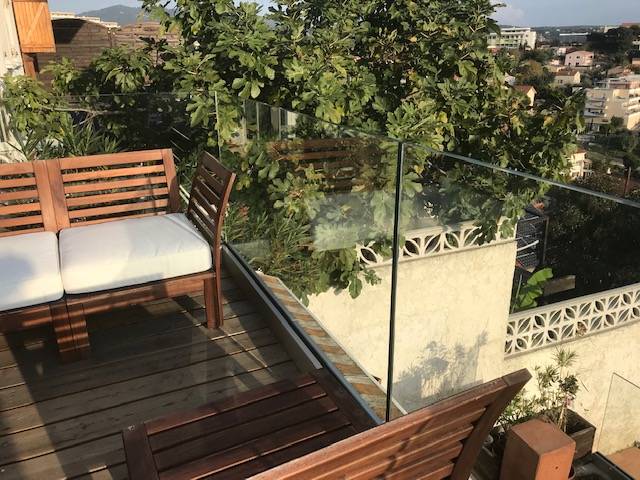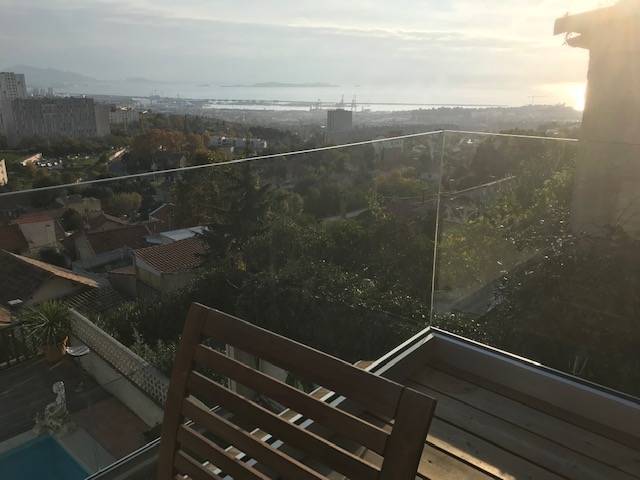 La société Alberstore à Aubagne a conçu, fourni et posé ce garde-corps en verre transparent pour une terrasse avec vue sur piscine chez un particulier habitant le quartier de l'Estaque à Marseille. Cette barrière de verre a été fabriquée sur mesure selon les souhaits et besoins techniques de notre client. Le garde-fou est composé d'un double-vitrage feuilleté type 88² clair avec joints polis sur 4 côtés. Les verres du garde-corps sont insérés dans des profils aluminium (rails pour pose au sol) qui les maintiennent de façon sécurisée. La transparence du verre alliée à l'aluminium du rail modernise et apporte un aspect design à la terrasse tout en permettant à notre client d'avoir une vue non obstruée sur sa piscine et la ville de Marseille. Si vous êtes vous aussi intéressé par un garde-corps en verre, contactez la société Alberstore au 04 69 00 21 73. Les rendez-vous avec un technico-commercial et les devis sont gratuits.