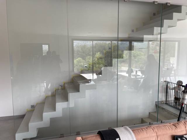 Création, fabrication et pose d'un mur vitré le long d'un escalier