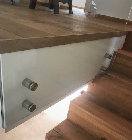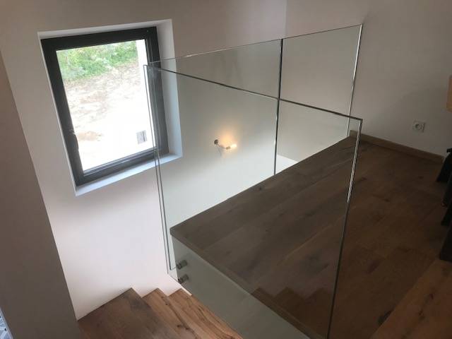 La société Alberstore à Aubagne a conçu, fourni et posé ce garde-corps tout verre sur le palier d'un escalier de maison chez un particulier de Marseille. Ce mur de verre a été réalisé avec un vitrage type 88² trempé couleur clair. Les 3 panneaux de verre ont des joints polis et sont percés pour accueillir des entretoises de fixation. En effet, 4 entreroises de forme arrondie pemettent de fixer correctement chaque verre à l'Anglaise c'est à dire en bordure de l'escalier. Les nombreuses normes de sécurité pour les garde-corps sont bien evidemment respectées. Si vous habitez prés d'Aubagne et que vous êtes également intéressé par la création d'un garde-corps en verre chez vous ou dans votre entreprise, n'hésitez pas à contacter la société Alberstore. Un technico-commercial se déplacera gratuitement chez vous.