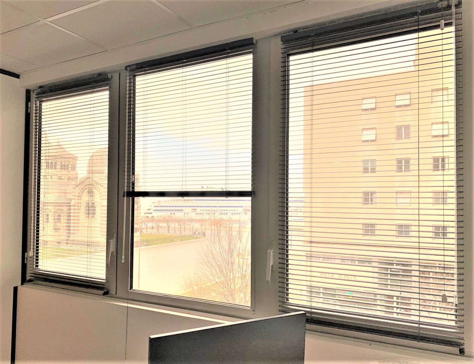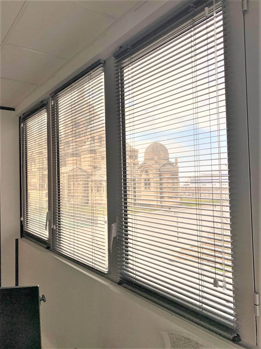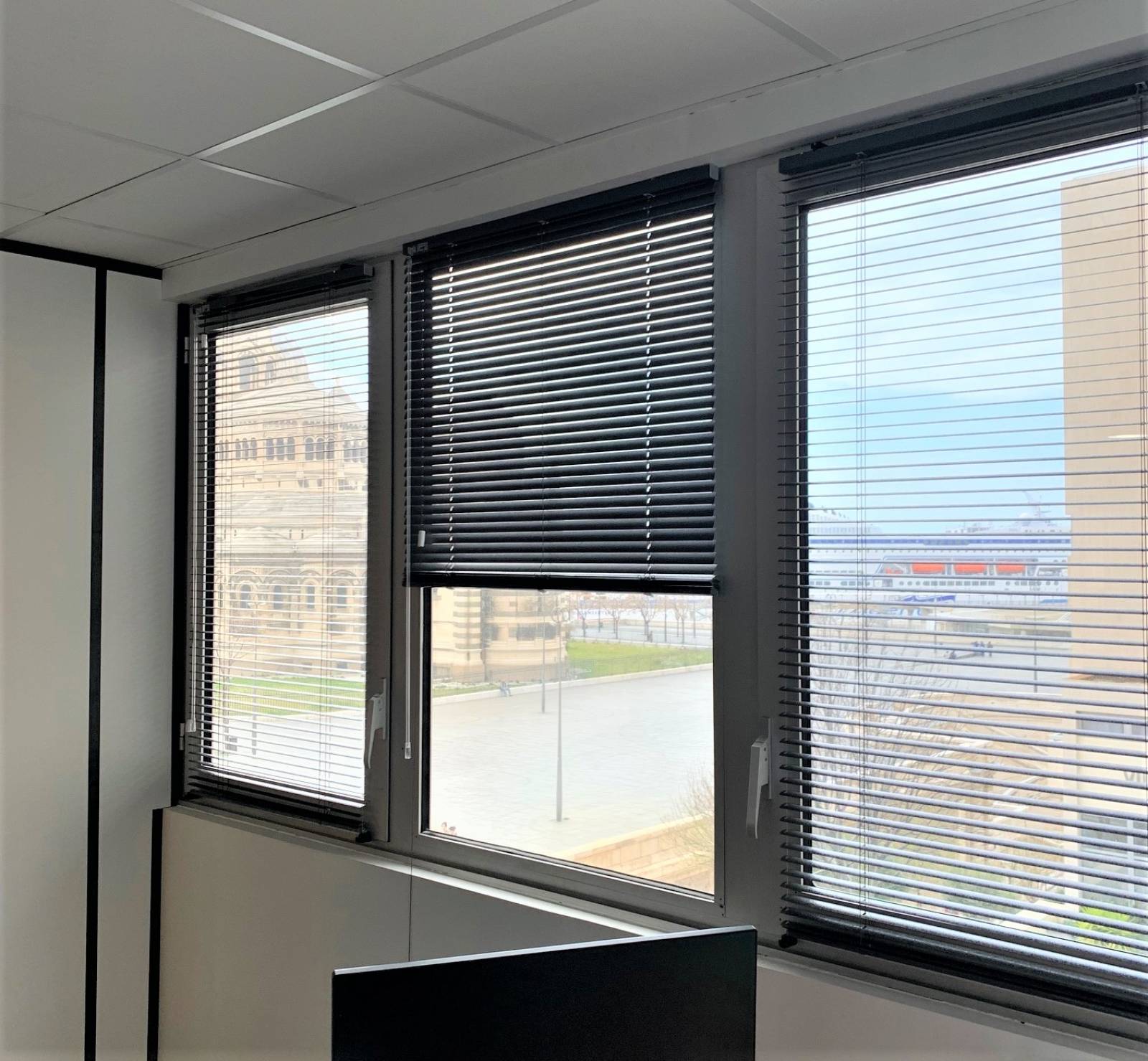 Exemple de vente et installation de stores vénitiens à lames 25 mm dans des bureaux d'entreprise à Marseille
