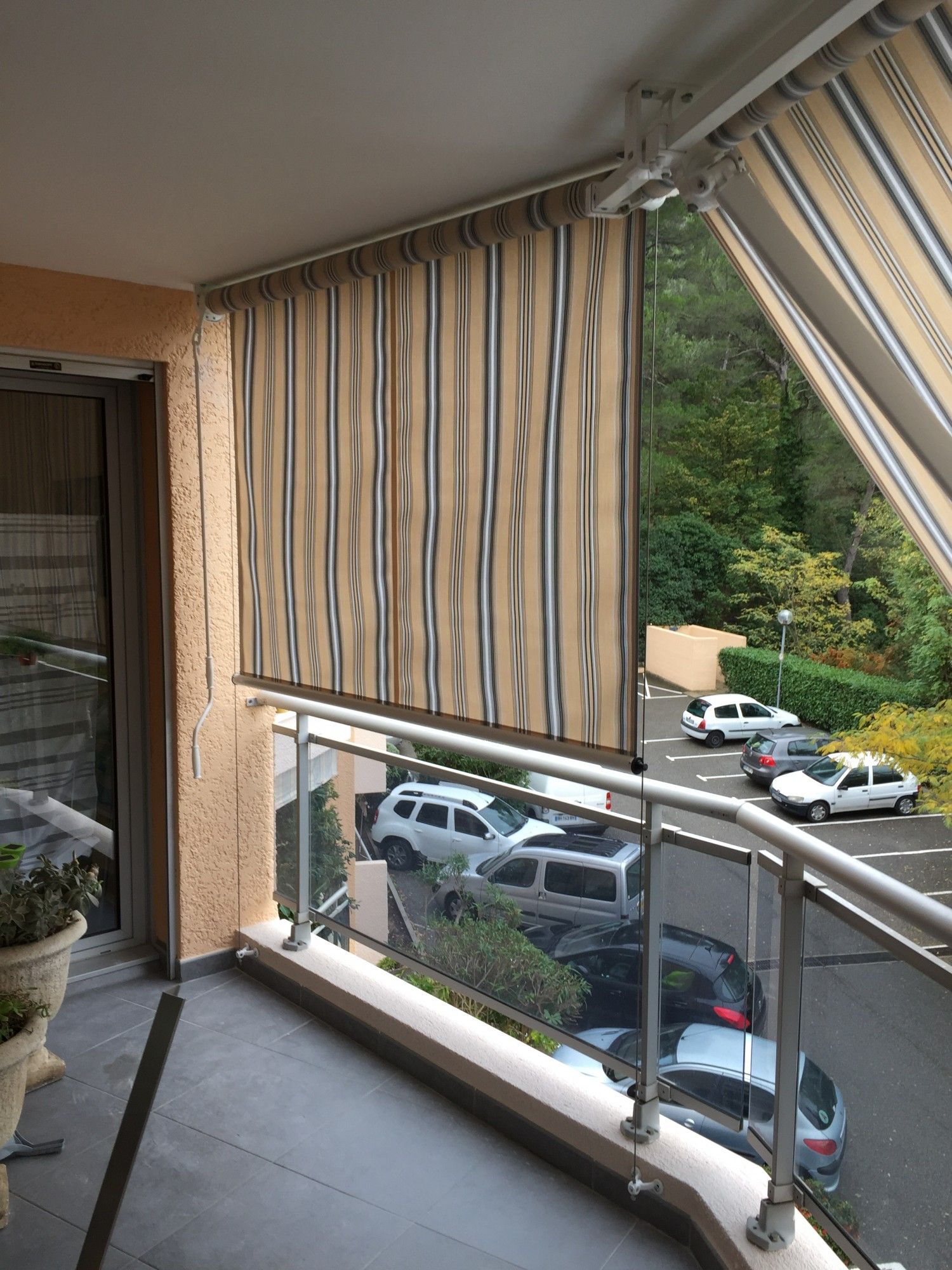 La société Alberstore a Aubagne a fermé la loggia de son client de Marseille avec 3 stores extérieurs. Alberstore Aubagne a effectivemment posé 3 stores extérieurs différents : un store banne sur une grande largeur, un store vertical à guidages latéraux et un store vénitien à lames de 50 mm permettant de doser l'entrée de lumière. Grâce à ces 3 stores extérieurs, notre client peut se cacher du vis-à-vis et se proteger du soleil. Ils ont été fabriqués sur mesure en France par les sociétés KE France et Filtersun.