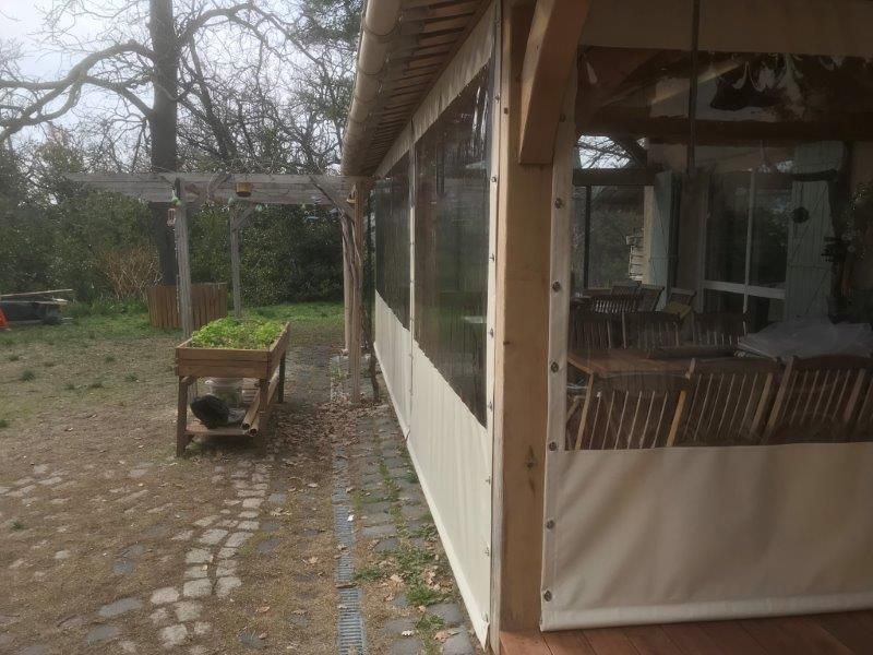 La société Alberstore à Aubagne a fourni et posé des toiles PVC afin de fermer une terrasse d'un particulier de Marseille et de créer ainsi une véranda en toiles. Ces bâches ont été confectionnées sur mesure avec des toiles PVC type Précontraint 502 de marque Serge Ferrari et du Cristal (toiles transparentes pour laisser entrer le jour). Notre client peut ouvrir ou remonter certaines toiles PVC grâce à des fermetures éclairs, des boucles, sanglons et tourniquets. Ces toiles en Précontraint 502 sont des toiles dites "techniques", elles sont classées au feu M2 et pèsent 590 gr/M² (grande résistance à la déchirure).