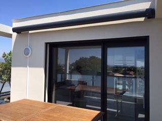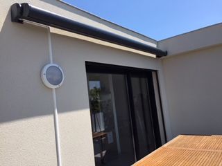 La société Alberstore à Aubagne a fourni et posé ce store coffre de terrasse dans une résidence neuve de Marseille. Ce store coffre complet correspond au modèle Compacto de la marque KE France, il est le store coffre de meilleur rapport qualité prix de la gamme. La banne a été conçue sur mesure en France selon les souhaits de notre client et les éxigences du règlement de copropiété : laquage gris anthracite 7016 pour le coffre et l'armature du store, moteur radio RTS de marque Somfy et sa télécommande, toile acrylique 290gr/M² de marque Dickson Solar Fabrics et de couleur uni souris chiné, classement au vent du store en respect de la Norme CE EN 13561....
