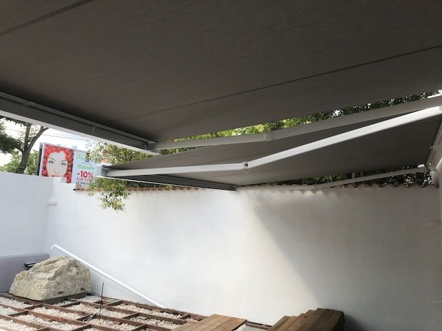 La société Alberstore à Aubagne a fourni et posé 2 stores modèle Qubica light chez un de ses clients à Aubagne. Ces stores coffres (coffre intégral) proposent un look contemporain et design et s'intègrent ainsi parfaitement au style moderne de la maison de notre client. Ce dernier a pu choisir les 2 couleurs de l'armature des bannes (ici blanc et gris). Les stores sont équipés de moteurs de marque Somfy radio IO et se manoeuvrent ainsi grâce à une télécommande Situo 5 à plusieurs canaux. Notre client a opté pour une toile Dickson Solar Fabrics (anciennement appelèe Dickson Orchestra) de couleur grise afin de rappeler le gris de l'armature des bannes.