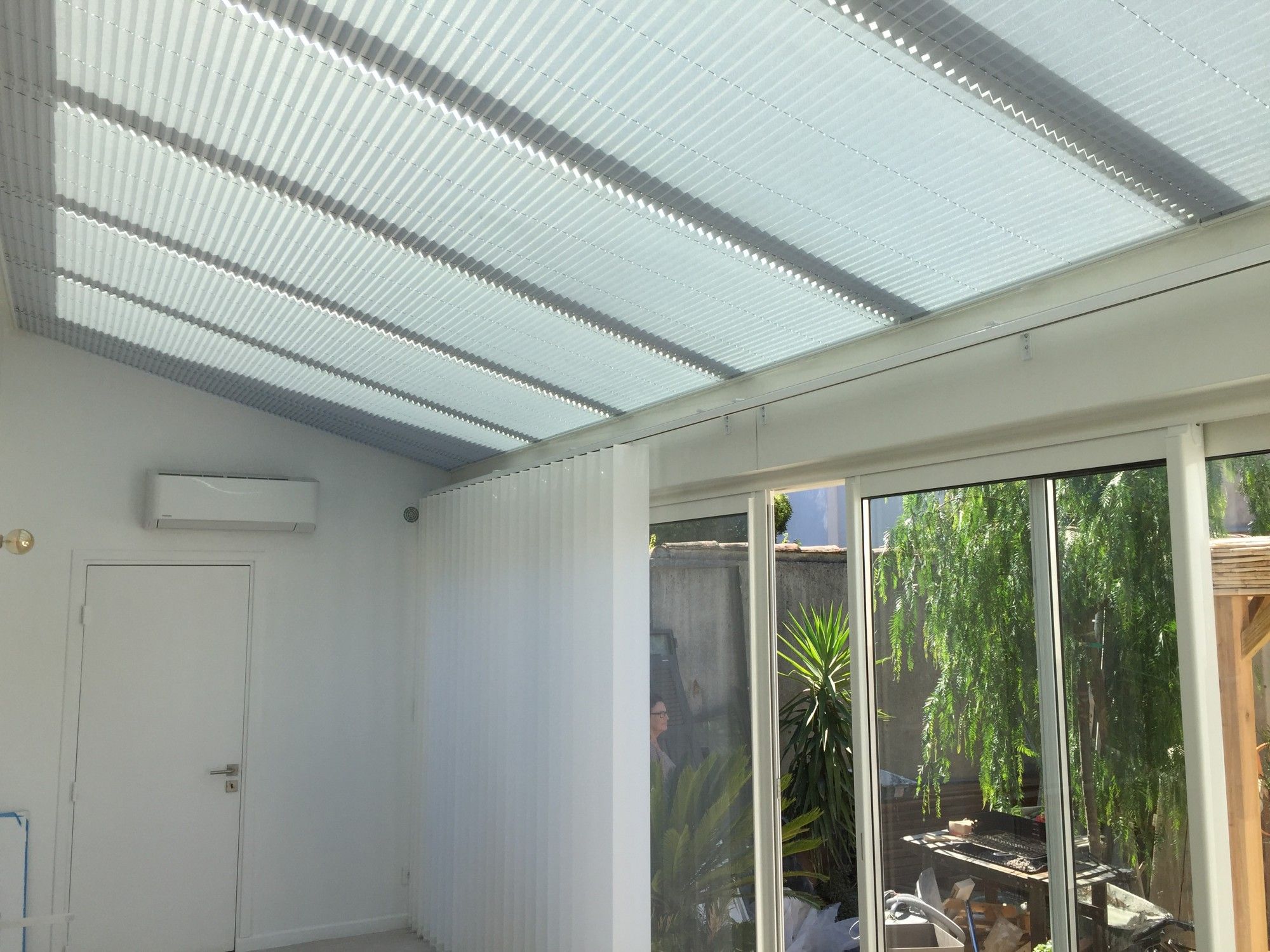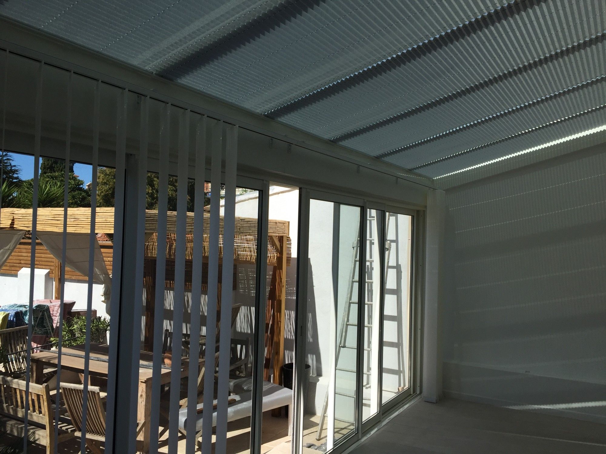 Aprés avoir conçu, vendu et posé des vérandas, la société Alberstore Aubagne peut habiller ces vérandas de stores plissés en toiture et de stores à bandes verticales devant les baies vitrées. Les stores plissés, Spécialement adaptés aux toitures de véranda, se manoeuvrent facilement à l'aide d'une perche telescopique. Les plis des stores mesurent 20 mm. Nos clients peuvent choisir la couleur des armatures des stores plissés (blanc, gris, anthracite ou bronze) ainsi que le tissus parmi une gamme de tissus isolants spécialement adaptés aux toitures de véranda. Les stores plissés ou Duette créent de l'obscurité, limitent la transmission de chaleur et les effets de serre ou protègent du vis à vis. Ils sont confectionnés sur mesure tout comme les stores à bandes verticales posés devant les baies vitrées. Les bandes de ce dernier mesurent souvent 127 mm et s'orientent ou se refoulent selon les envies de notre client. Notre client peut ainsi doser l'entrée de lumière et définir la zone de passage selon, comme il le souhaite, dans sa véranda. Alors si vous souhaitez vous aussi équiper votre véranda de stores d'intérieur sur mesure et que vous habitez prés d'Aubagne ou de Marseille, contactez nous. Les devis avec déplacements sur site sont gratuits. Nos technico-commerciaux sauront vous conseiller en fonction de vos envies et de la configuation de votre véranda.