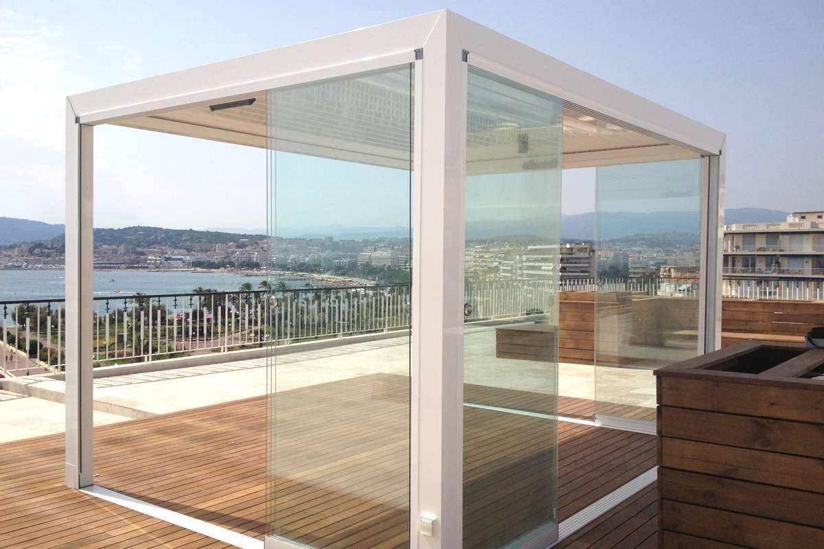 Protégez-vous du vent sous votre pergola bioclimatique avec des coulissants panoramiques