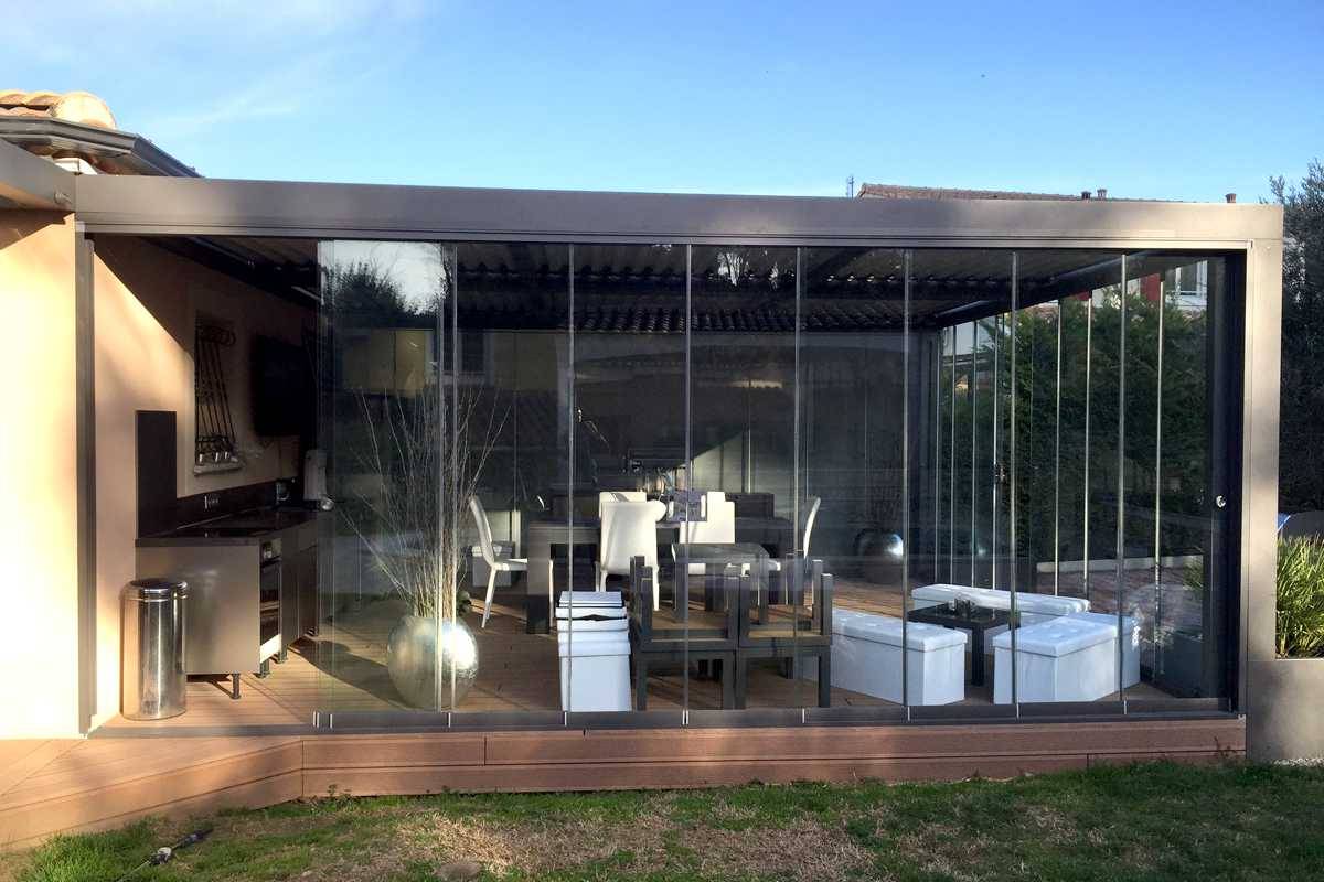 La société Alberstore à Aubagne fournit et pose des pergolas à lames orientables mais propose également des coulissants panoramiques vous permettant de transformer votre pergola en véranda. Le coulissant panoramique de marque Glass systems vous protège du vent et de la pluie sans obstruer la vue car, contrairement à une baie vitrée standard, il n'a pas de montant transversal. Les panneaux du coulissant (possibilité jusqu'à 10 panneaux) se refoulent sur un ou deux côté lorsque vous souhaitez l'ouvrir et laissent ainsi un grand accès de passage. Les coulissants Seeglass de Glass Systems sont fabriqués sur mesure à Aubagne (produit français et provençal). Si vous souhaitez vous aussi fermer votre pergola ou votre terrasse avec des coulissants panoramiques, contactez Alberstore au 04 69 00 21 73. Les devis sont gratuits.