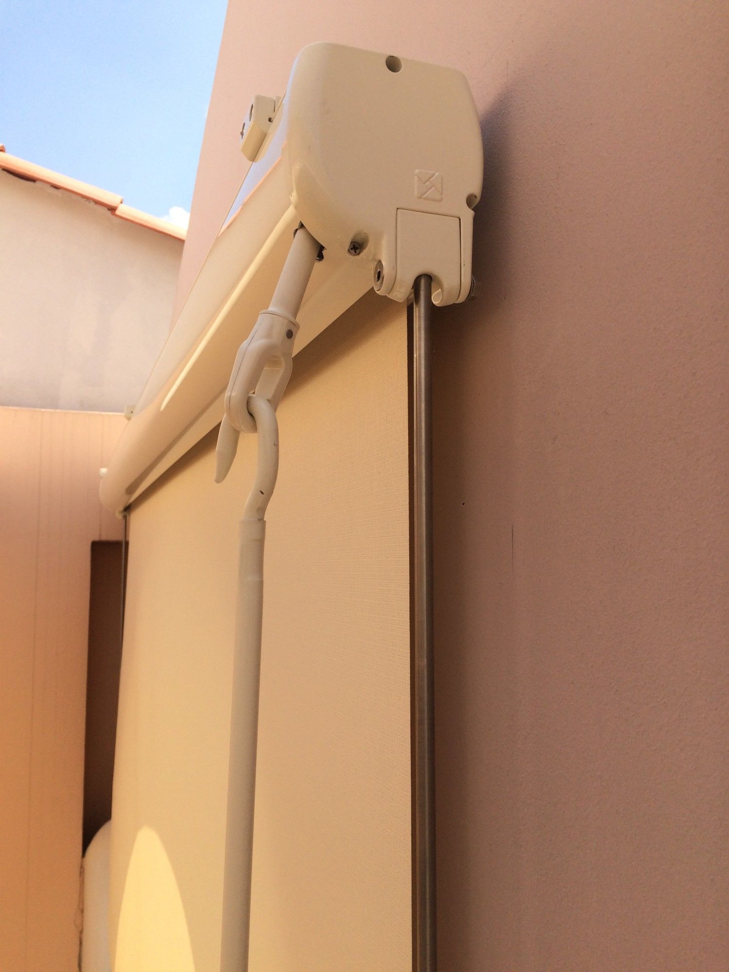 La société Alberstore à Aubagne a posé 2 stores verticaux à guidages latéraux chez un de ses clients de Carnoux en Provence. Ces stores modèle "Bannette" sont équipés de coffres (taille : 112 x112) laqués ivoire (RAL 1013) afin de protéger au mieux la toile des intempéries. Ils sont guidés par des conducteurs rigides. La toile est une toile microperforée type Soltis 92 de marque Ferrari couleur champagne. La manoeuvre des stores est manuelle, elle se fait par treuil. Les stores verticaux modèle bannette de la société KE sont fabriqués sur mesure en France. Contactez Alberstore pour un devis gratuit au 04 42 84 28 79.