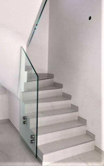 Vente, création et pose d'un garde-corps en verre pour un escalier d'intérieur dans une villa de Marseille