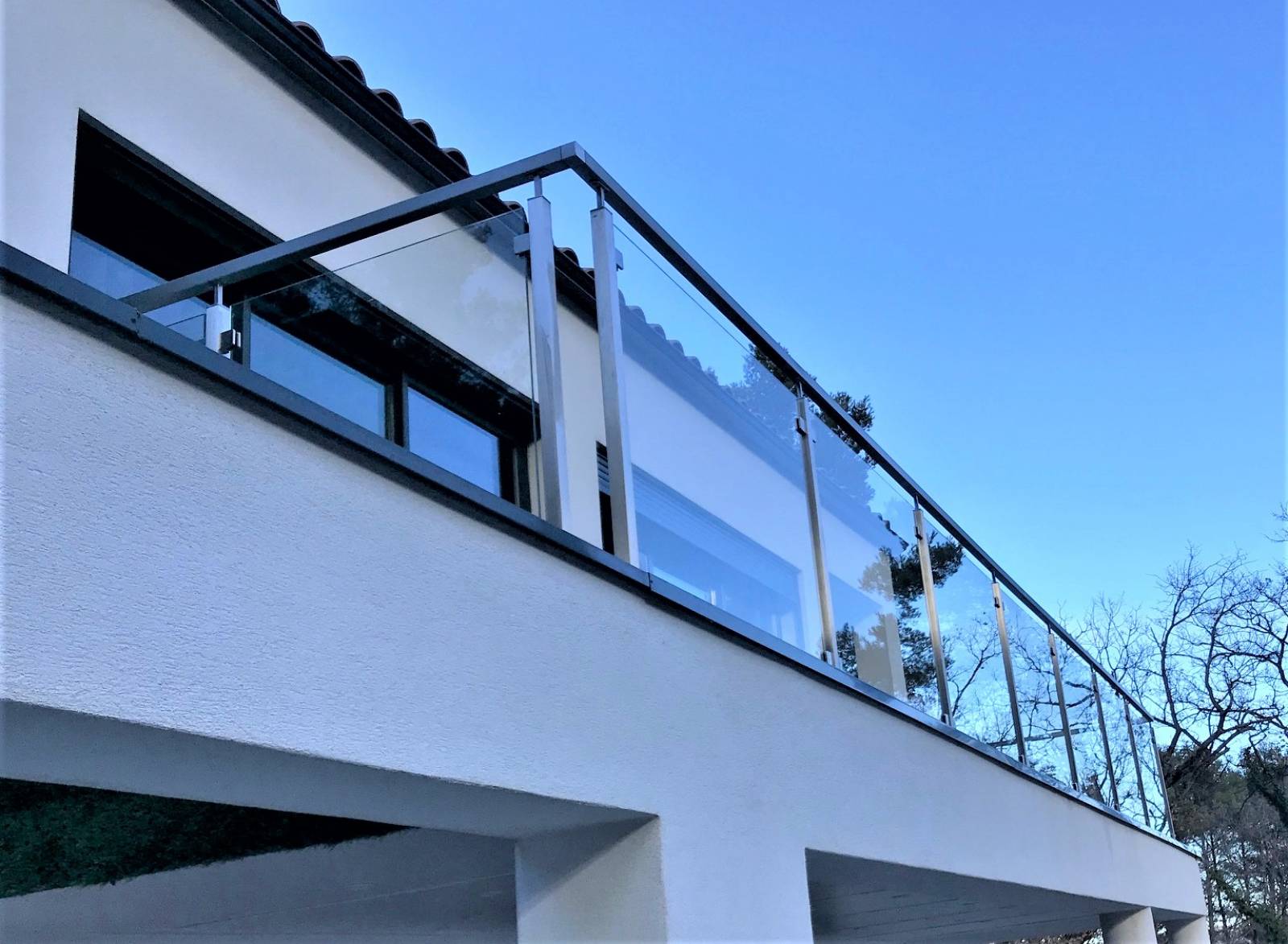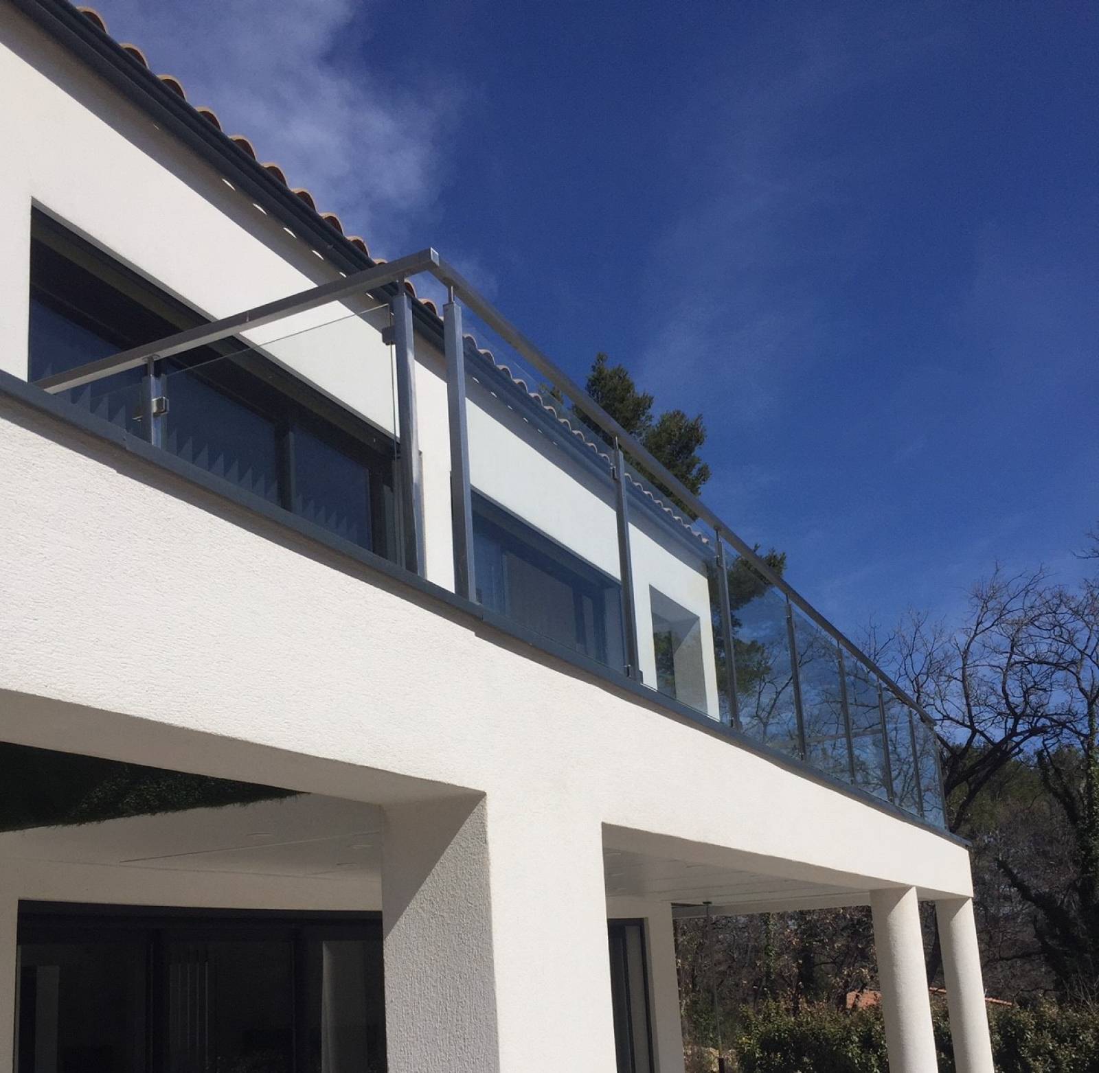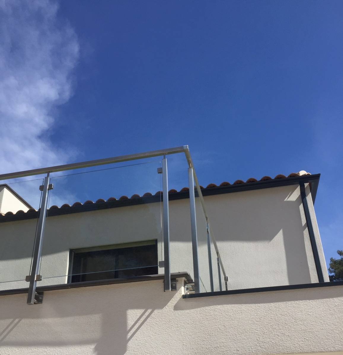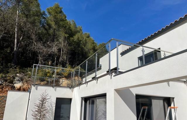Vente, création, fourniture et pose d'un garde-corps en inox et verre pour une villa d'Aubagne
