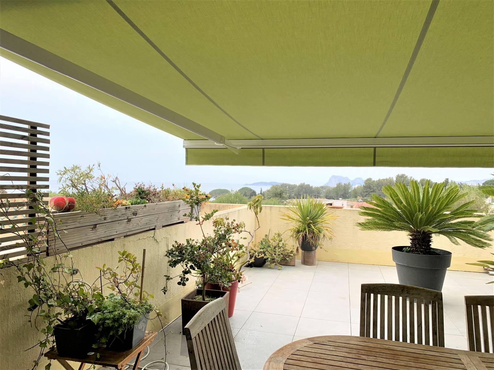 La société Alberstore à Aubagne a vendu et posé ce store monobloc sur la terrasse d'un immeuble à Marseille. Il s'agit d'un store banne modèle "Design 110" de la société STI. Il a été fabriqué sur mesure à Marseille. Notre client a eu le choix parmi de nombreuses options : type de manoeuvre (manuelle ou par motorisation Somfy, toile Dicskon Orchestra ou Serge Ferrari, couleur de laquage RAL....).