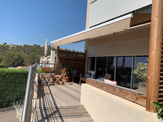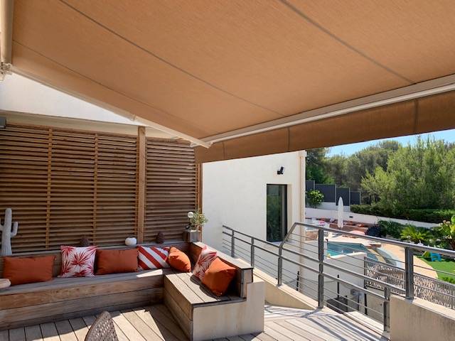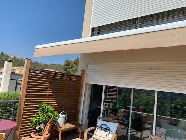 Le lambrequin (retombée de toile à l'avant du store) droit de la toile apporte un effet moderne aux bannes. Grâce aux bras des stores qui se déploient en un clic de télécommande, notre client peut profiter de sa terrasse lors des jours les plus chauds et garder de la luminosité dans son habitat en repliant ses stores lorsqu'il fait mauvais temps. Contrairement à une pergola la banne monobloc sait se faire discréte lorsqu'elle n'est pas utilisée. Alors si vous avez également un projet d'achat de stores et que vous habitez prés de Marseille ou Aubagne, n'hésitez pas à contacter Alberstore. Les devis sont gratuits.