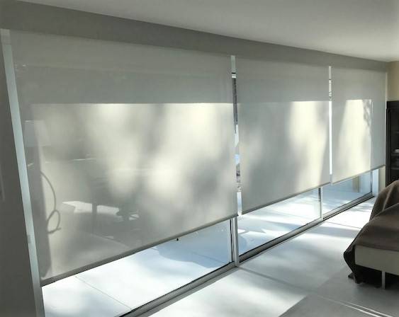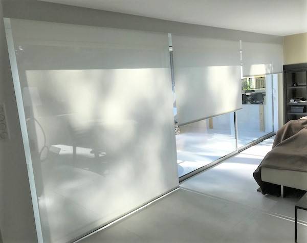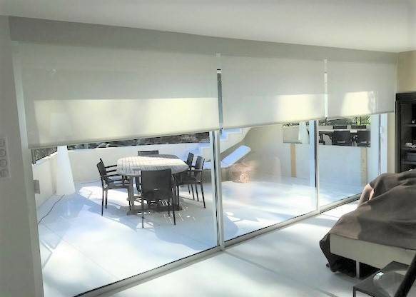 Vente et pose de stores d'intérieur type enrouleur électrique devant une baie vitrée à Aubagne