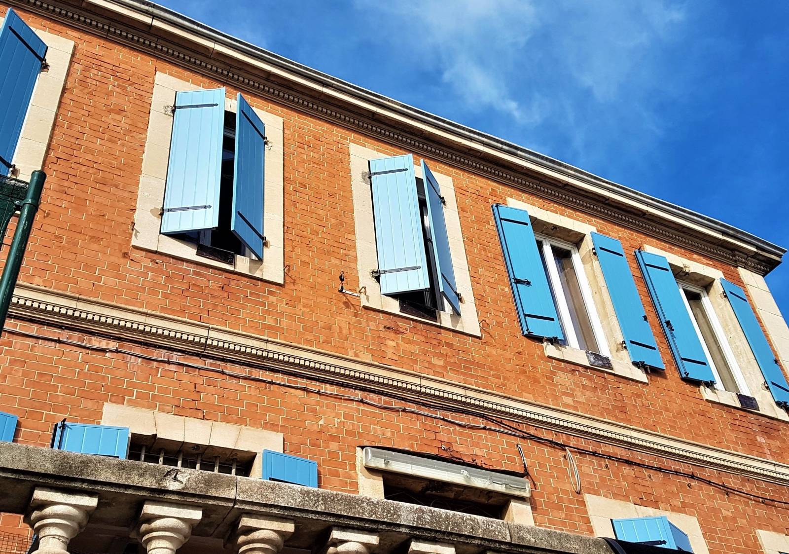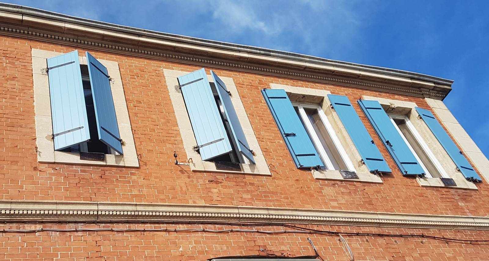 La société Alberstore à Aubagne a vendu, fourni et posé ces volets battants isolés en aluminium sur la façade d'une grande maison de Marseille. Pour la rénovation de cette maison bourgeoise, un de nos technico-commerciaux a proposé à notre client plusieurs modèles de volets battants (isolés ou extrudés), a établi un devis gratuit, a pris les mesures de fabrication, puis a fait fabriquer sur mesure les volets. Nos poseurs ont ensuite posé les volets sur les gonds existants. Ces volets battants 2 vantaux aluminium ont été réalisés en France et plus précisément à Marseille. Ils sont constitués de panneaux isolés (2 parements en polypropylène alvéolaire et un remplissage avec complexe isolant en EPS graphité). A l’ère des économies d’énergie, ces volets battants de la gamme isolée MG I, contribuent efficacement à réduire les notes d’électricité, en protégeant de la chaleur ou du froid selon la saison.
